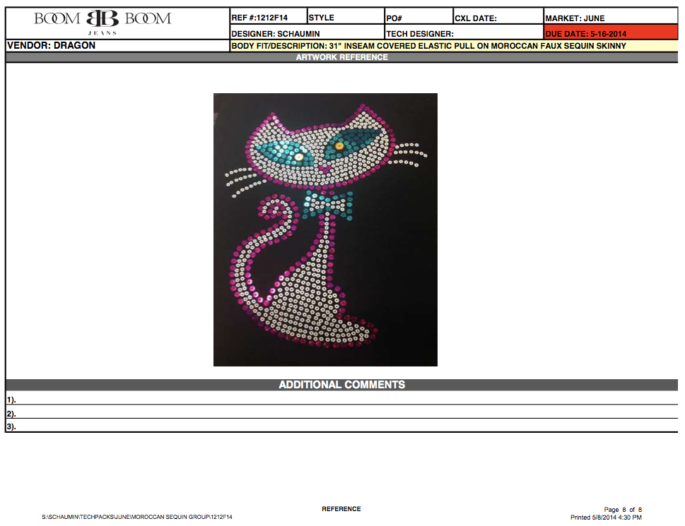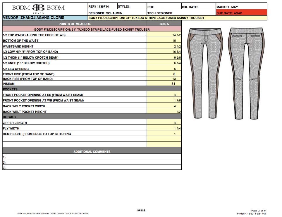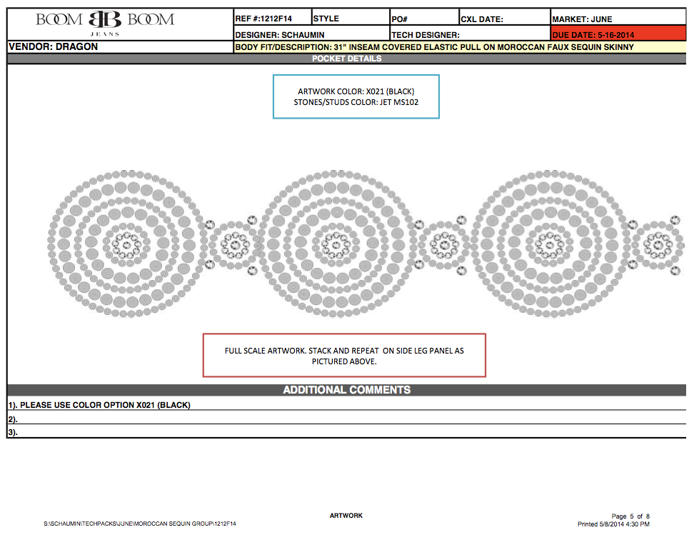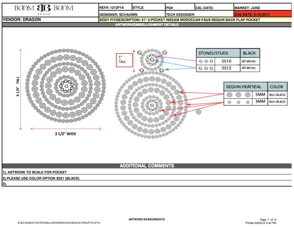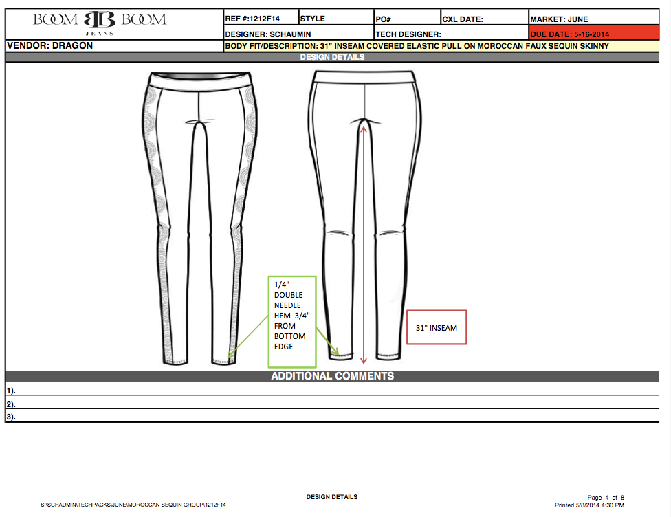 Technical Packages consisting of garment construction and trim specifications for accurate production.